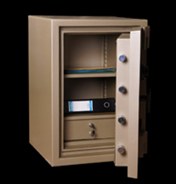 | Badan | : | Total ketebalan 85 mm terbuat dari pelat baja dalam dan luar yang di las menjadi satu kesatuan dan berisi bahan padat formula AS 90. Di sekeliling pintu terdapat "Fire Blocking Construction". |